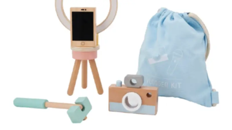 Das umstrittene Spielzeugset enthält alle Utensilien, die junge Influencer auf ihrem Weg zum Internet-Ruhm benötigen könnten: Ein Stativ mit integriertem Ringlicht, ein Smartphone aus Holz, einen Selfiestick und eine Kamera. Verpackt ist das gesamte Set in einer babyblauen Kordeltasche, die den spielerischen Charakter unterstreichen soll. Der Preis liegt bei etwa 30 Euro.