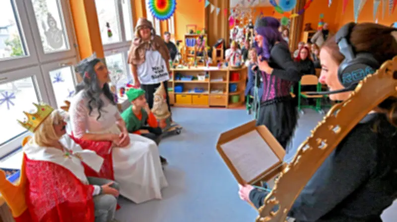Im Mittelpunkt der Feierlichkeiten steht eine kreative Adaption des klassischen Märchens Schneewittchen. Die Theatergruppe, die sich ausschließlich aus Eltern zusammensetzt, präsentiert eine Version, die mit traditionellen Erwartungen bricht. Besonders auffällig ist die Besetzung der Hauptrollen: Schneewittchen wird von einem zwei Meter großen Darsteller verkörpert, während der Prinz aus dem Nachbarreich mit einer Körpergröße von nur 1,50 Metern auftritt.