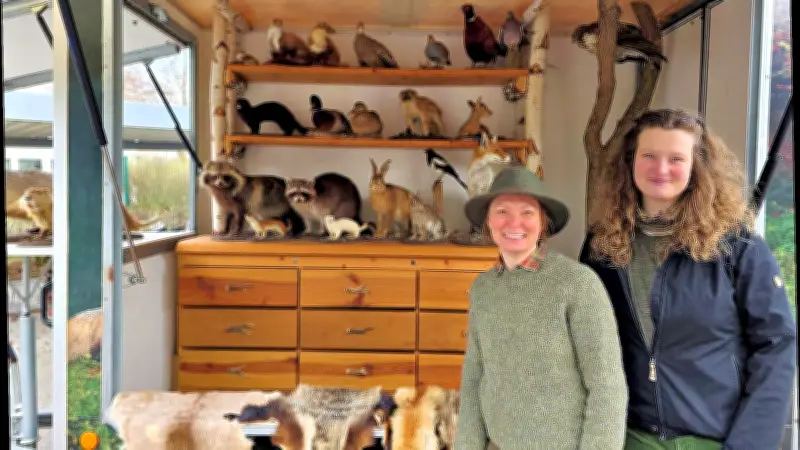 Die Jägerschaft Bitterfeld hatte zahlreiche Stationen aufgebaut, an denen die Kinder aktiv werden konnten. So durften sie beispielsweise verschiedene Felle ertasten und den Tieren zuordnen. Auch Fährten im Sandboden wurden untersucht, um herauszufinden, welches Tier dort entlanggelaufen war. Besonders spannend war die Fühlkiste, in der die Schüler Gegenstände aus dem Wald ertasten mussten. Ein Höhepunkt war der Präparate-Anhänger, in dem Franziska Köhler-Deparade und Maxi Emmerich den Kindern die heimische Tierwelt erklärten. Die beiden Jägerinnen zeigten unter anderem, was sich hinter dem sogenannten „Spiegel“ des Rehs verbirgt – eine helle Fellpartie am Hinterteil des Tieres.