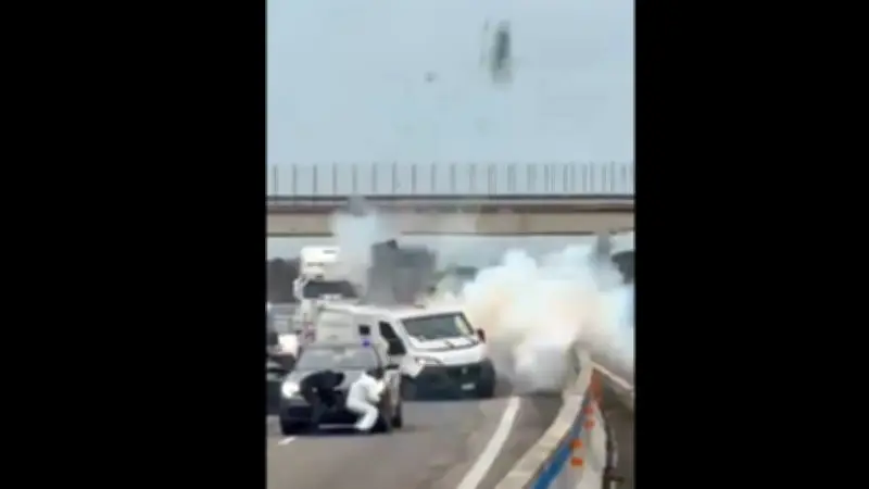 Spektakulärer Überfall in Italien: Bewaffnete Gangster sprengen Geldtransporter auf Autobahn