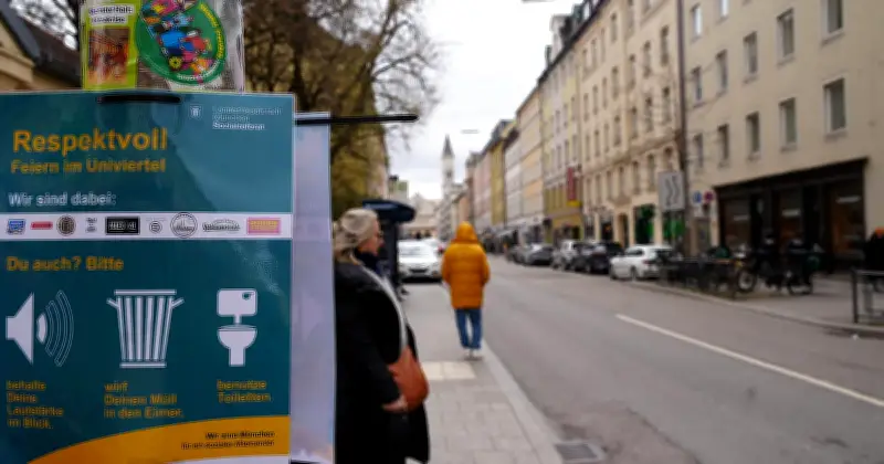 Wer in diesen Tagen durch die Schellingstraße in der Maxvorstadt schlendert, stößt an jedem Ampelmast auf neue Plastikschilder. "Respektvoll feiern im Univiertel – Du auch?" steht dort gelb auf petrolfarbenem Grund. Drei weiße Piktogramme zeigen einen Lautsprecher, einen Mülleimer und ein Klo mit den entsprechenden Aufforderungen: "Behalte deine Lautstärke im Blick", "Wirf deinen Müll in den Eimer" und "Benutze Toiletten".
