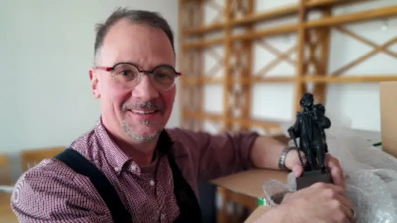 Als Stephan Fey zum Abschied einen Karton aufmacht, um eine sogenannte Kiepenkerl-Figur aus dem Münsterland zu zeigen, wirkt er wie ein Mensch, der nicht nur im Pfarrhaus angekommen ist, sondern auch bei sich selbst.