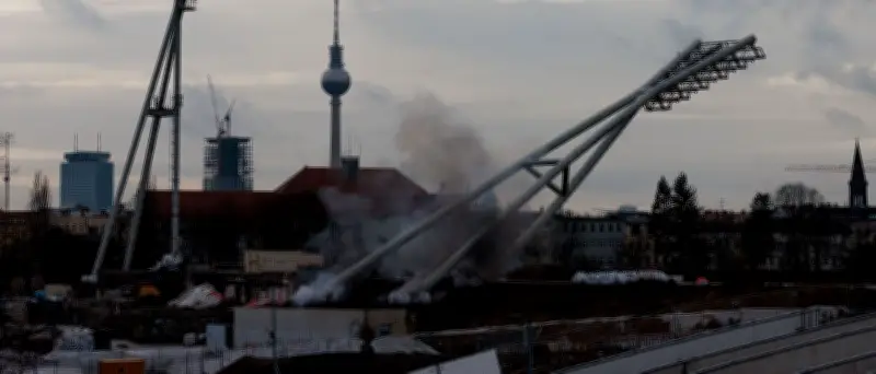 Im Rahmen der umfassenden Umgestaltung des Friedrich-Ludwig-Jahn-Sportparks zu einem modernen Inklusiv-Sportpark sind heute zwei der vier monumentalen Flutlichtmasten kontrolliert gesprengt worden. Die Sprengung erfolgte mit etwa 30 Minuten Verzögerung gegenüber dem ursprünglich geplanten Zeitplan, verlief dann jedoch reibungslos und nach allen Sicherheitsvorkehrungen.