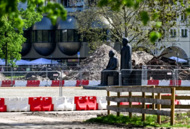 Das Marx-Engels-Forum in Berlin-Mitte bleibt noch mehr als eineinhalb Jahre eine Baustelle. Die überlebensgroßen Bronzefiguren von Karl Marx und Friedrich Engels, die dort seit 1986 in Richtung Fernsehturm blicken, sind bis zum Abschluss der Baumaßnahmen voraussichtlich Ende 2027 nicht öffentlich zugänglich. Das teilte die Senatsverwaltung für Mobilität und Umwelt auf dpa-Anfrage mit.