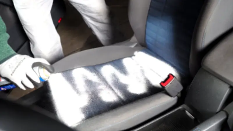 Trocknen Sie den Sitz so gut wie möglich mit einem Mikrofasertuch. Ein Heißluftföhn kann den Prozess beschleunigen. Abschließend tragen Sie eine Imprägnierung auf, um die Polster länger sauber zu halten und vor erneuter Verschmutzung zu schützen.