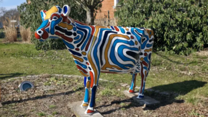 Wer derzeit durch den Osten der Mecklenburgischen Seenplatte reist und Woldegk passiert, könnte sich verwundert die Augen reiben. An der bekannten Ampelkreuzung unterhalb des Mühlenbergs steht nicht länger die traditionell schwarz-weiße Kuh-Skulptur, sondern ein farbenfrohes Kunstwerk, das die Blicke der Vorbeifahrenden auf sich zieht.