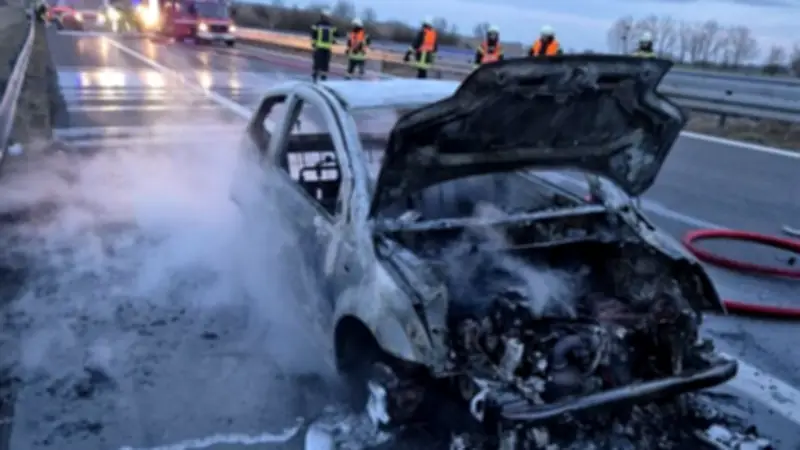 Die aufmerksame Fahrerin schaffte es noch, ihr Fahrzeug auf dem Standstreifen zum Stehen zu bringen. Doch dann entwickelte sich die Situation dramatisch: Das Auto fing Feuer und die Frau versuchte verzweifelt, den Brand mit Wasser zu löschen. Ihre Bemühungen blieben jedoch erfolglos – der Kleinwagen brannte komplett aus und hinterließ nur noch ein verkohltes Wrack.