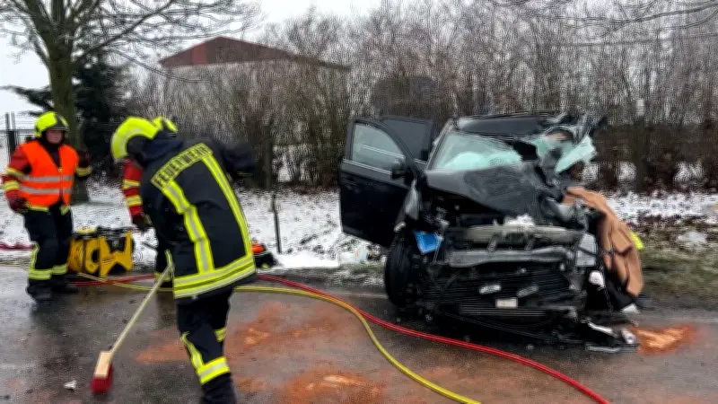 Lebensgefährlicher Frontalcrash auf Bundesstraße 321 bei Schneefall