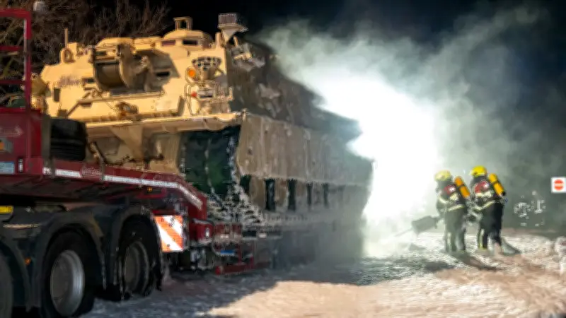 US-Panzer auf A4 in Flammen: Reifenplatzer führt zu spektakulärem Lkw-Brand