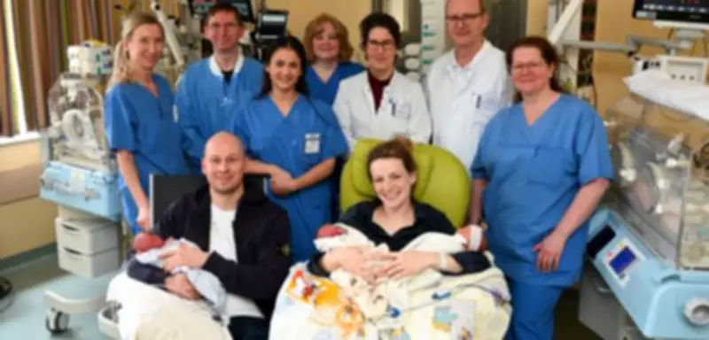 Für die Eltern, Mara Deboer (33) und Max, kam die Nachricht völlig unerwartet. In der neunten Schwangerschaftswoche hatte der Frauenarzt beim Ultraschall die Überraschung offenbart. "Wir haben uns spontan sehr gefreut", erinnern sich beide. "Davor hatten wir nicht einmal mit Zwillingen gerechnet." Ab der 20. Schwangerschaftswoche wurde Mara Deboer alle sechs Tage von Spezialisten des EvKB untersucht, um die Risiken zu minimieren.