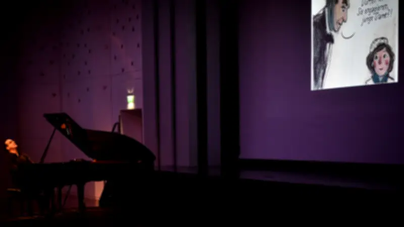 Die teils komponierten und teils improvisierten musikalischen Vertonungen verknüpfen sich nahtlos mit den zeitgleich auf einer großen Leinwand projizierten Comic-Bildern. Diese Symbiose aus visueller und akustischer Kunst erschafft ein einzigartiges Erlebnis, das sowohl unterhaltsam als auch zum Nachdenken anregend ist.