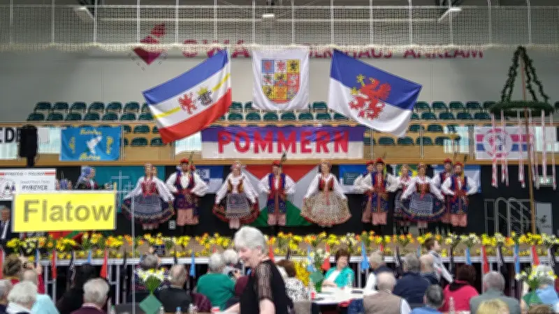 Erstmals beim Pommern-Treffen kam eine sechsköpfige Kaschuben-Gruppe aus Slupsk zum Einsatz, die in typischen Trachten und mit Volksinstrumenten wie Brummtopf und Teufelsgeige auftrat. Diese Darbietungen unterstreichen die kulturelle Vielfalt und Tradition der Region.