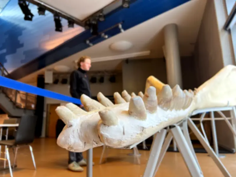 Der rund 14,3 Meter lange Walbulle war am 17. Februar 2025 vor Hörnum aus der Nordsee an Land gezogen und anschließend fachgerecht zerteilt worden. Die Bergungsarbeiten dauerten zwei Tage, während zahlreiche Schaulustige trotz des intensiven Verwesungsgeruchs die Aktion am Strand nahe des Hörnumer Hafens verfolgten. Der nun ausgestellte Unterkiefer des Wals auf Sylt enthält übrigens keine originalen Zähne mehr – diese wurden durch Kunstzähne ersetzt, um möglichen Diebstählen vorzubeugen.