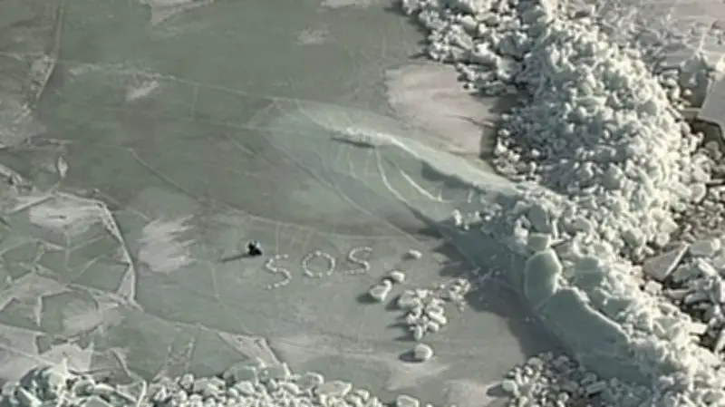 Ein atemberaubendes Foto der finnischen Seenotrettung dokumentiert einen spektakulären Einsatz: Zwei deutsche Abenteurer wurden von einer Eisscholle im Bottnischen Meerbusen gerettet, nachdem sie zuvor auf dem Eis gezeltet hatten. Die Camper hatten mit Schneebrocken die Buchstaben „SOS“ auf die Eisscholle gelegt, um auf sich aufmerksam zu machen.
