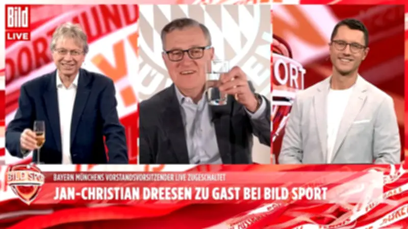 Der FC Bayern München kann die Meisterfeiern bereits detailliert planen! Nach dem spektakulären 3:2-Erfolg beim Bundesliga-Topspiel bei Borussia Dortmund am Samstag beträgt der Vorsprung der Münchner auf den Verfolger aus Dortmund zehn Spieltage vor Saisonende satte elf Punkte. Dennoch zeigte sich Vorstandsvorsitzender Jan-Christian Dreesen (58) im exklusiven Fußball-Talk "BILD Sport" äußerst zurückhaltend und lehnte sogar symbolische Glückwünsche sowie einen angebotenen Champagner von Experte Walter M. Straten und Moderator Filip Thiel entschieden ab.