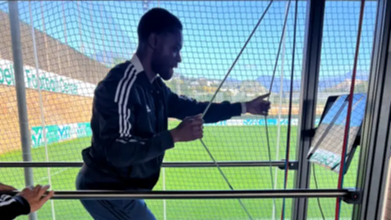 Um seine Lauftechnik zu optimieren und noch effizienter zu werden, nutzte Leipzigs Viel-Sprinter ein hochmodernes Spezial-Laufband. Baku, der in der aktuellen Bundesliga-Saison mit 546 Antritten auf Platz sieben der Sprint-Statistik steht, trainierte mit dem Gerät namens Sensorpro. Dieses stärkt gleichzeitig Koordination, Stabilität, Kraft und Ausdauer – alles entscheidende Faktoren für einen modernen Außenverteidiger.