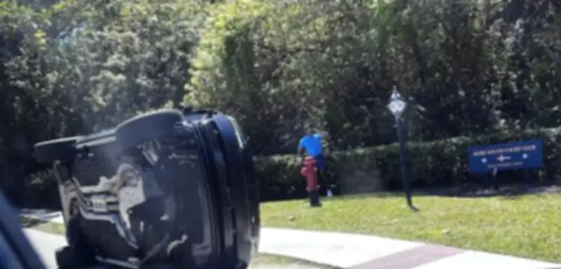 Bei dem Unfall versuchte Woods laut Angaben von Sheriff John Budensiek auf einer zweispurigen Straße einen Lastwagen zu überholen. Dabei streifte er mit seinem Land Rover das Heck des Lkw, woraufhin sein Fahrzeug auf die Fahrerseite kippte. Woods konnte sich eigenständig aus dem Wrack befreien und blieb unverletzt. Die Polizei wurde jedoch alarmiert, nachdem Woods am Unfallort als "lethargisch" beschrieben wurde.