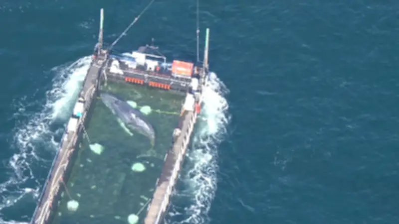 Luftaufnahmen zeigen den Wal-Transport