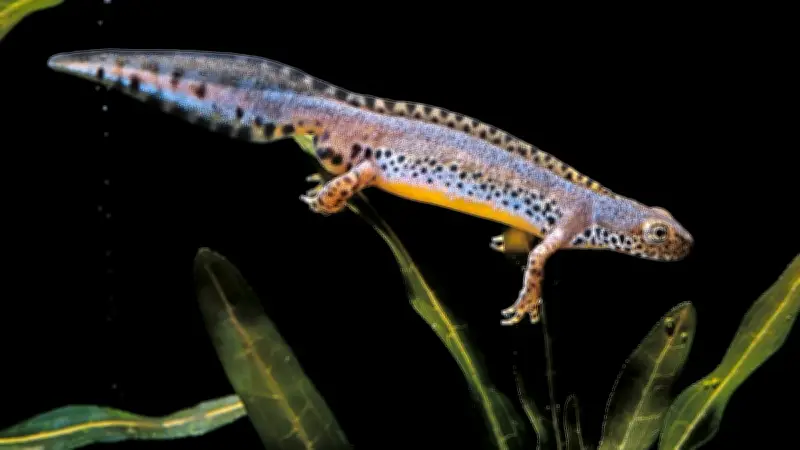 Teichmolch (Lissotriton vulgaris): Dies ist die häufigste Molchart in Deutschland. Während der Paarungszeit trägt das Männchen einen hohen, gewellten Kamm, während der Schwanz in einem leuchtenden Orange erstrahlt. Die Weibchen heften bis zu 300 Eier einzeln an Wasserpflanzen an. Interessanterweise bleiben manche erwachsenen Tiere durch Neotonie dauerhaft im Larvenstadium.