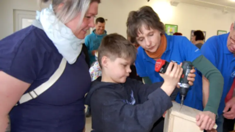 Unter den Teilnehmern befanden sich auch Paula Krumbein und ihr Sohn Pepe, die unter der fachkundigen Anleitung von Elke Prömper einen Nistkasten konstruierten. Die praktische Arbeit wurde von den Helfern des Nabu unterstützt, die ihr Wissen über Vogelschutz und die richtige Bauweise der Nisthilfen teilten.