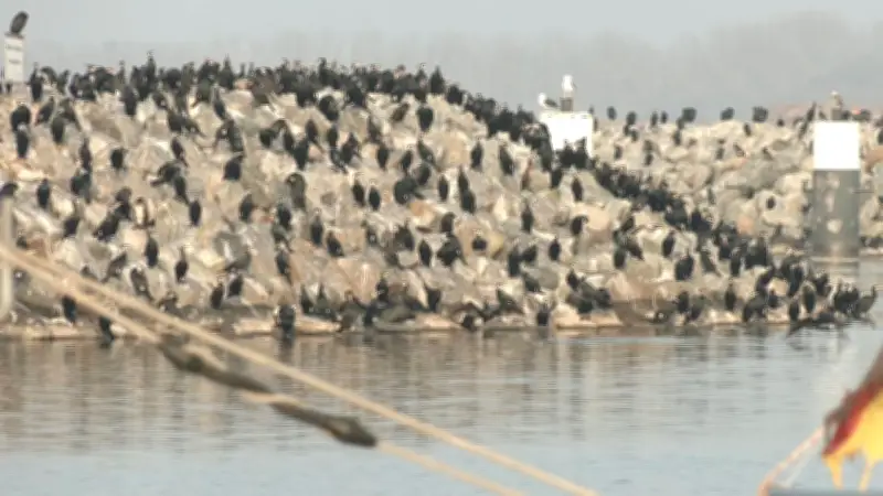 Spektakuläres Naturschauspiel: Tausende Kormorane rasten auf Hafenmole in Barth