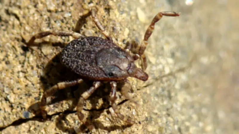 Eine Zecke, die aktiv auf die Jagd geht