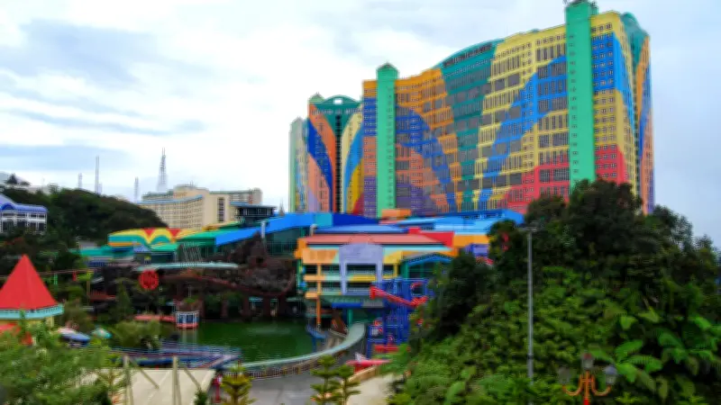 - Das Resort bietet Themenparks, darunter Malaysias größten Indoor-Schneepark, eine riesige Shopping-Mall, Dutzende Restaurants, Nachtclubs und einen Golfplatz.