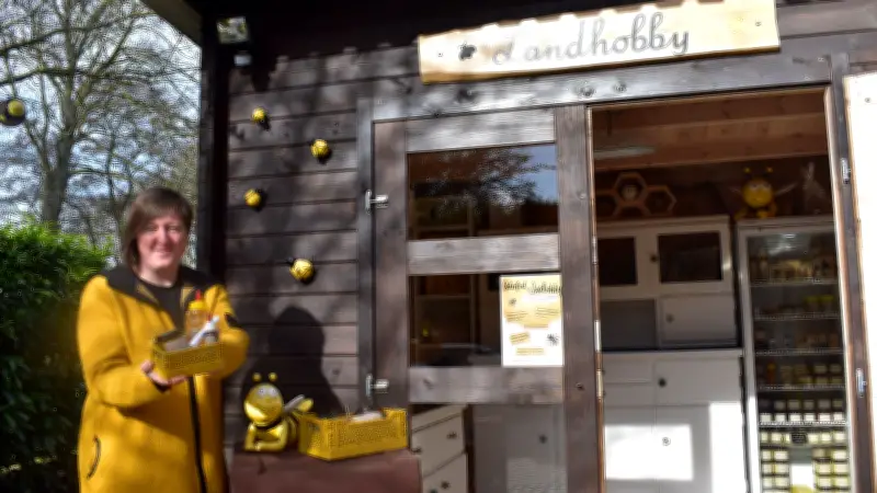 Abseits des Osterfestes öffnet das charmante Verkaufshäuschen Am Hopfenbruch 20 regelmäßig seine Türen. Jeden Freitag von 16 bis 18 Uhr sowie nach Vereinbarung am Wochenende können Kunden hier nicht nur einkaufen, sondern auch Wissenswertes über das Leben der Honigbienen erfahren. Nicole Jahn setzt bewusst auf einen Erlebniseinkauf, bei dem besonders Kinder die faszinierende Welt der Imkerei entdecken können.