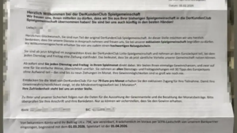 Die Betrüger gehen mit bemerkenswerter Professionalität vor. In den überschwänglichen Begrüßungsschreiben jubelt es: „Sie sind ab jetzt Mitglied im ausgewählten Kreis DerKundenClub Lotto-Spielgemeinschaft und nehmen an dem EuroJackpot teil.“ Nur wenige Absätze weiter folgt der Schock: Die Schreiber listen die tatsächlichen Bankdaten der Empfänger auf und kündigen an: „Vom bekannten Konto wird Ihr Beitrag i.H.v. 79€, wie vereinbart, 4-wöchentlich … eingezogen.“