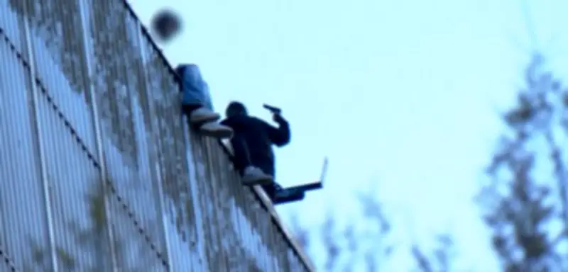 Gegen 19.15 Uhr wurden die Einsatzkräfte alarmiert, nachdem Passanten die Personen auf dem Gebäude entdeckt hatten. Von der Höhe warfen die Kletterer Steine und eine Leiter herab, was eine erhebliche Gefahr für die Umgebung darstellte. Besonders besorgniserregend: Einer der Beteiligten wurde mit einem schusswaffenähnlichen Gegenstand beobachtet, was die Situation zusätzlich eskalieren ließ.