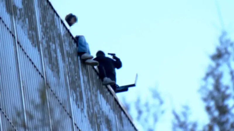 Die Teenager hielten sich ungesichert am Abgrund auf und posierten sogar mit einer Pistole, was die alarmierten Beamten in höchste Alarmbereitschaft versetzte. Die Situation eskalierte weiter, als von dem Dach Flaschen und Steine auf die Einsatzkräfte geworfen wurden.