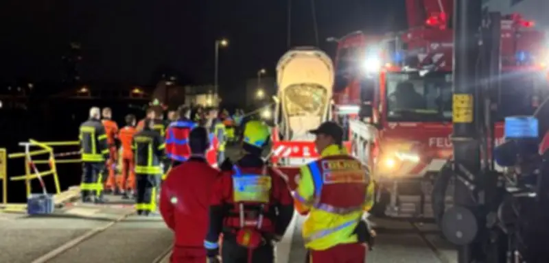 Gegen 22.20 Uhr alarmierte ein Zeuge die Rettungskräfte. Das Fahrzeug war aus noch ungeklärter Ursache auf das Hafenbecken zugerast, hatte ein Schutzgitter durchbrochen und war kopfüber von der acht Meter hohen Kaimauer in das Nordbecken des Osthafens gestürzt. Dort sank es auf den Grund. Die Polizei bestätigte, dass das Auto vollständig unter Wasser lag.