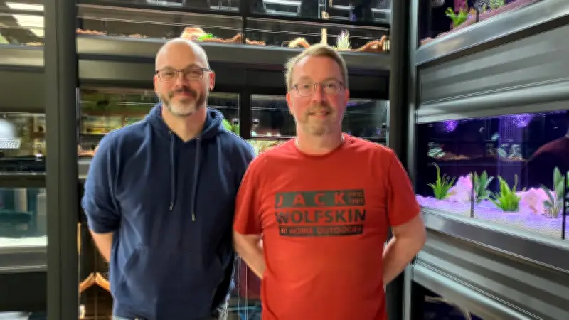 René Dittmar und Renato Holz erfüllen sich mit „Flosse und Pfote“ einen lang gehegten Traum. „Ich war schon als Kind immer gerne in Tiergeschäften und habe mir die Tiere angeschaut“, erzählt Dittmar. Besonders angetan haben es ihm Aquarien und Terrarien. Daher wird es in ihrem Geschäft eine Abteilung für Aquarien, Terrarien und sogar Teichfische geben. Auch Angelbedarf haben die beiden Geschäftsführer im Sortiment. „Das ist nicht so umfangreich wie in einem reinen Angelgeschäft, aber der Hobbyangler wird hier fündig“, sagt Dittmar.