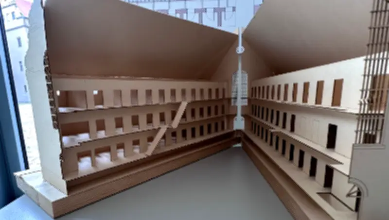 Der Zellenbau der Lichtenburg zeugt von vielen Zeitschichten und dient als eindrucksvolles Symbol der Vergangenheit. Ein Modell von Studierenden der FH Aachen, erstellt von Gero Mutz und Shirley Peters, präsentiert einen innovativen Entwurf, wie dieses Gebäude künftig nutzbar gemacht werden könnte. Dieser und weitere Entwürfe bilden die Grundlage für das bevorstehende Kolloquium in der Gedenkstätte im April, das unter dem Titel „Visionen für die Lichtenburg 2.0“ steht.