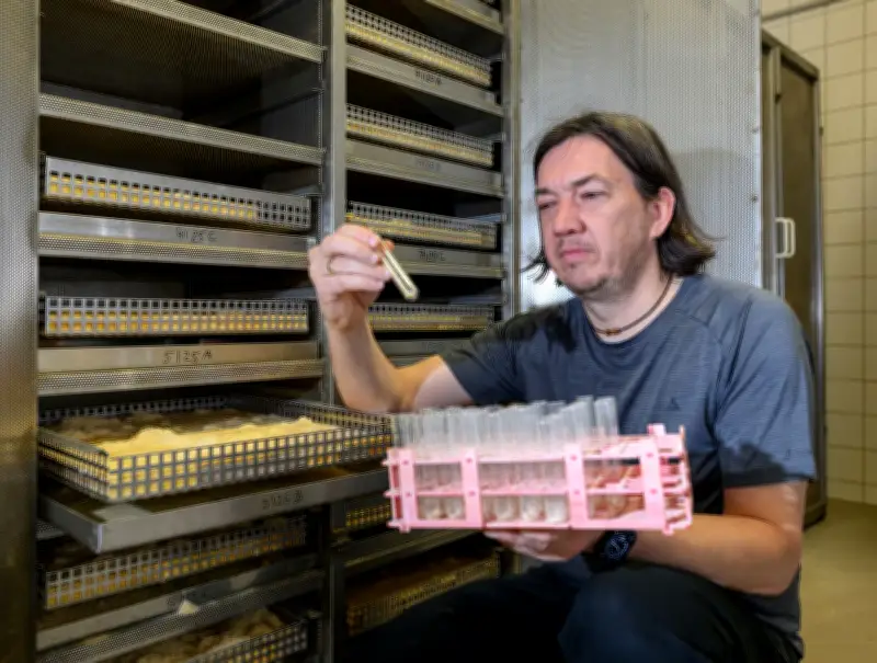Thomas Kolling von der MPA erklärt, dass die Larven unter kontrollierten Bedingungen optimal gedeihen. In den Laboren herrscht tropisches Klima mit hoher Luftfeuchtigkeit und Wärme. Dadurch verkürzt sich der Entwicklungszyklus der Hausbocklarven auf etwa 14 Monate, während er in der Natur mehrere Jahre dauert. Die Larven fressen sich durch Holzplatten, die in Stahlschränken gestapelt sind. Das feine Bohrmehl, das dabei entsteht, nennt Kolling „Genagsel“.