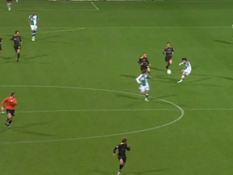 In der Nachspielzeit führte der tabellenführende Werder Bremen nur knapp mit 2:1 gegen das abstiegsbedrohte Alemannia Aachen. Nach einem Freistoß etwa zehn Meter hinter der Mittellinie köpfte Clemens Fritz den Ball aus der Gefahrenzone. Diego, der sich als vorderster Spieler befand, erkannte blitzschnell die Gelegenheit: Das gegnerische Tor war ungeschützt, allerdings in schwindelerregender Entfernung.