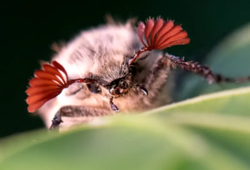 - Erwachsene Maikäfer fressen frische Laubblätter an Eichen und Buchen