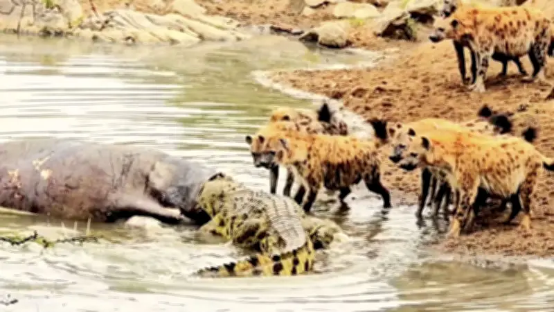 Der Kampf um die Beute: Hyänen gegen Krokodil